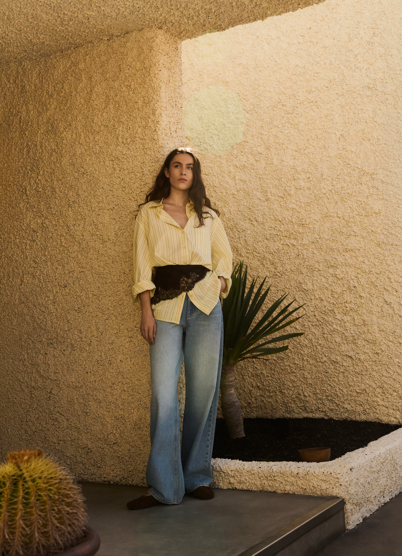 Colectia include si numeroase piese perfecte pentru stylingul de zi cu zi, ideale de purtat cu o perechepreferata de jeans: topuri din dantela (in galben si albastru) combinate cu o jacheta din piele cu rever largsau modele care lasa umerii descoperiti, precum un top halter din viscoza cu decolteu drapat si un top asimetric maro. Denim-ul capata, la randul lui, o noua interpretare prin silueta moderna barrel, disponibilain mai multe variante de spalare.